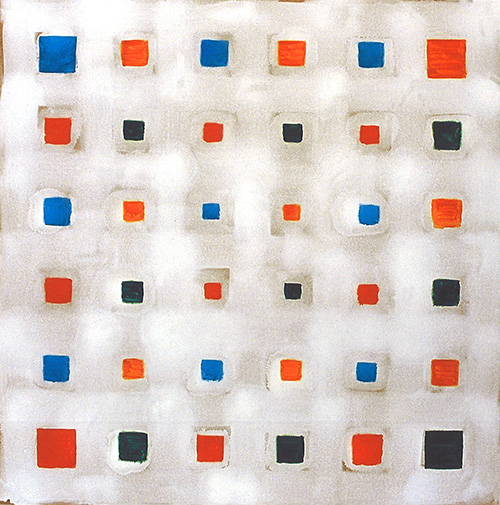 In order to not lose control in my experiments with the properties of color, I was looking for a way of organizing the surface that could provide me with an obvious entry and a clear conclusion in painting. Thus, I have developed a basic model, which divides the surface into equal intervals of numerical impulses such as 1/4, 1/9, 1/16, 1/25 or 1/36.