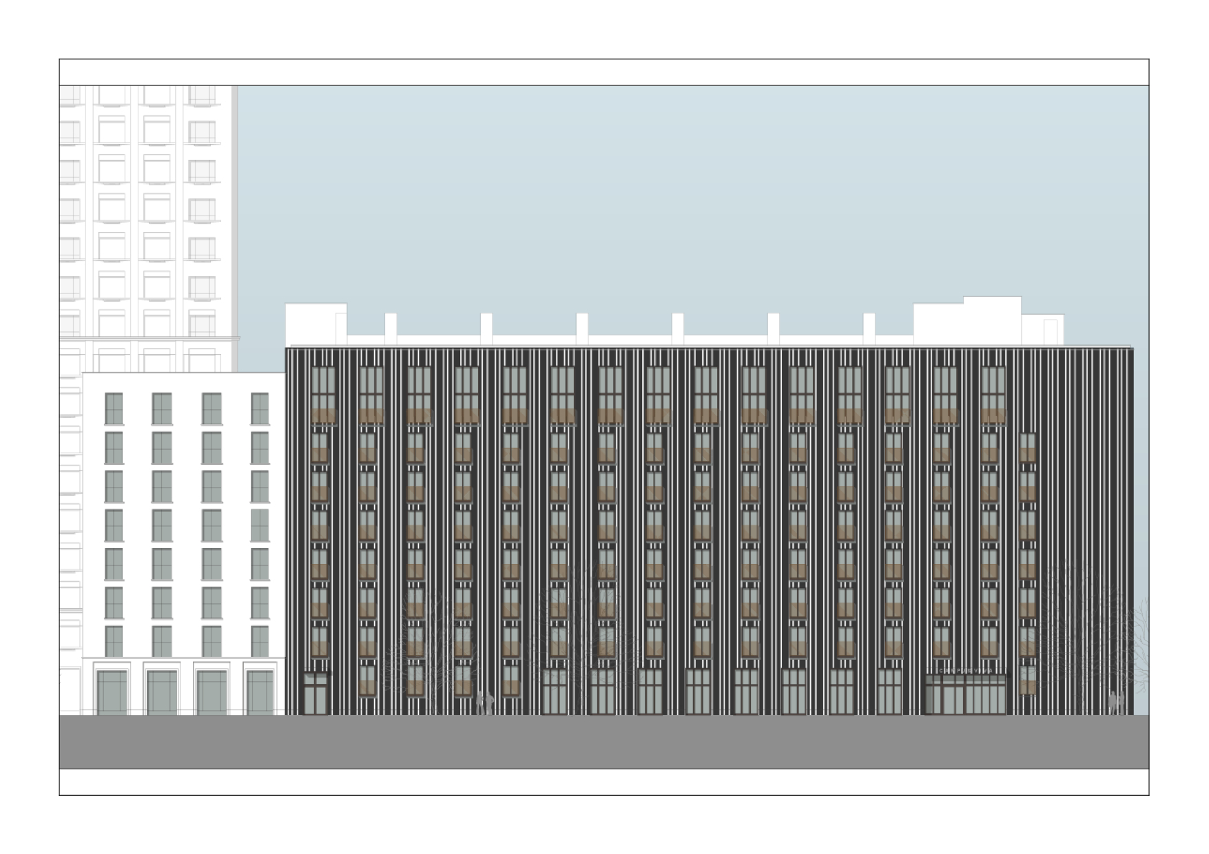 Last year, I was asked by Steidle Architects to try to implement The Beautiful Formula Ideas on the design of a storefront. Here is an example with the rhythmical motive 1,2,1,3,1,5.
