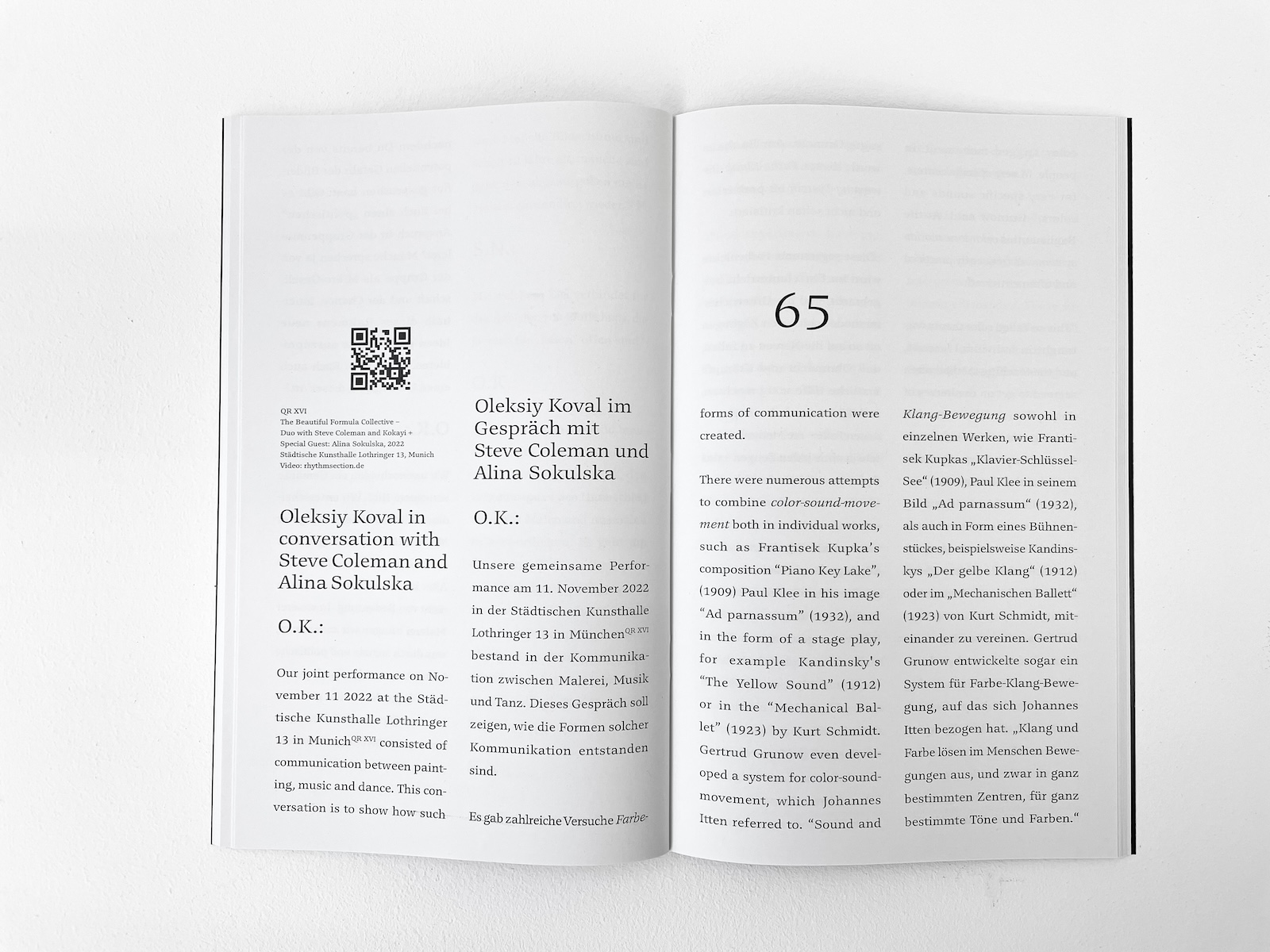 I thank Steve Coleman, Simon Eastwood, Daniel Geiger, Hans R. Heitmann, Eduard Kastner, Oleksandr Koval, Bernhard Lypp, Volker Möllenhof, Selima Niggl, Thomas Rieger, Alina Sokulska, Veronika Wenger, Michael Wright for their precious collaboration in the making of this publication.